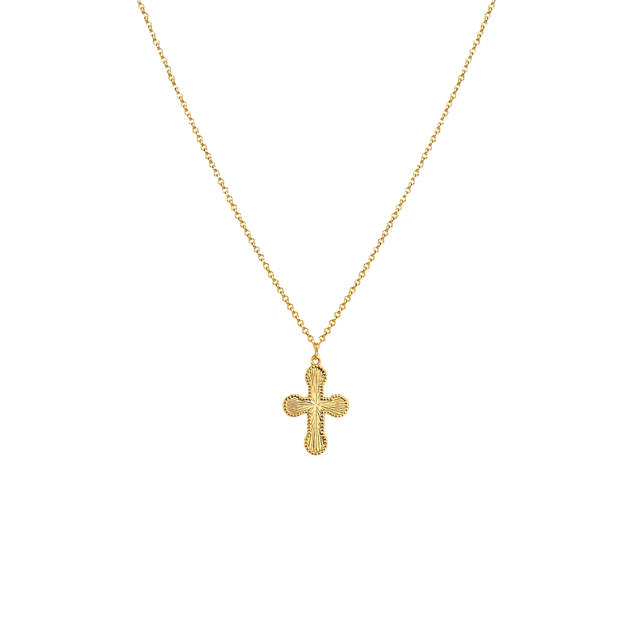 A dainty, stackable Mini Cross Pendant Necklace with textured shine for everyday layers and “quiet luxury” styling.