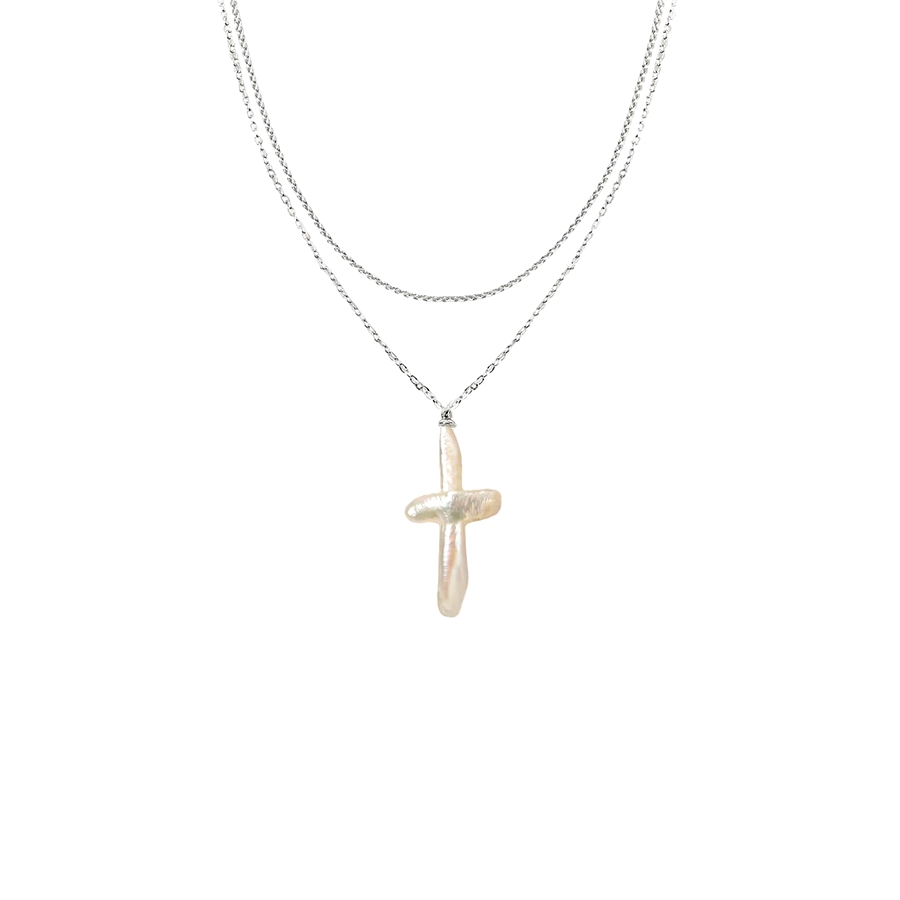 - Style: double-layer necklace with baroque pearl cross pendant