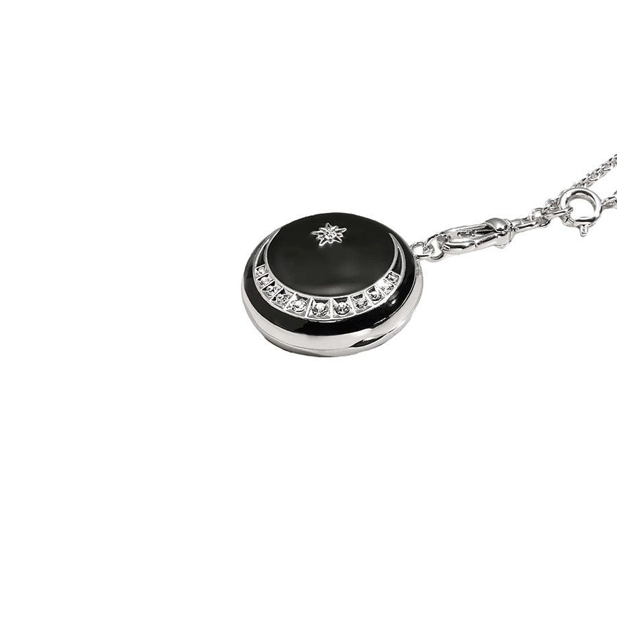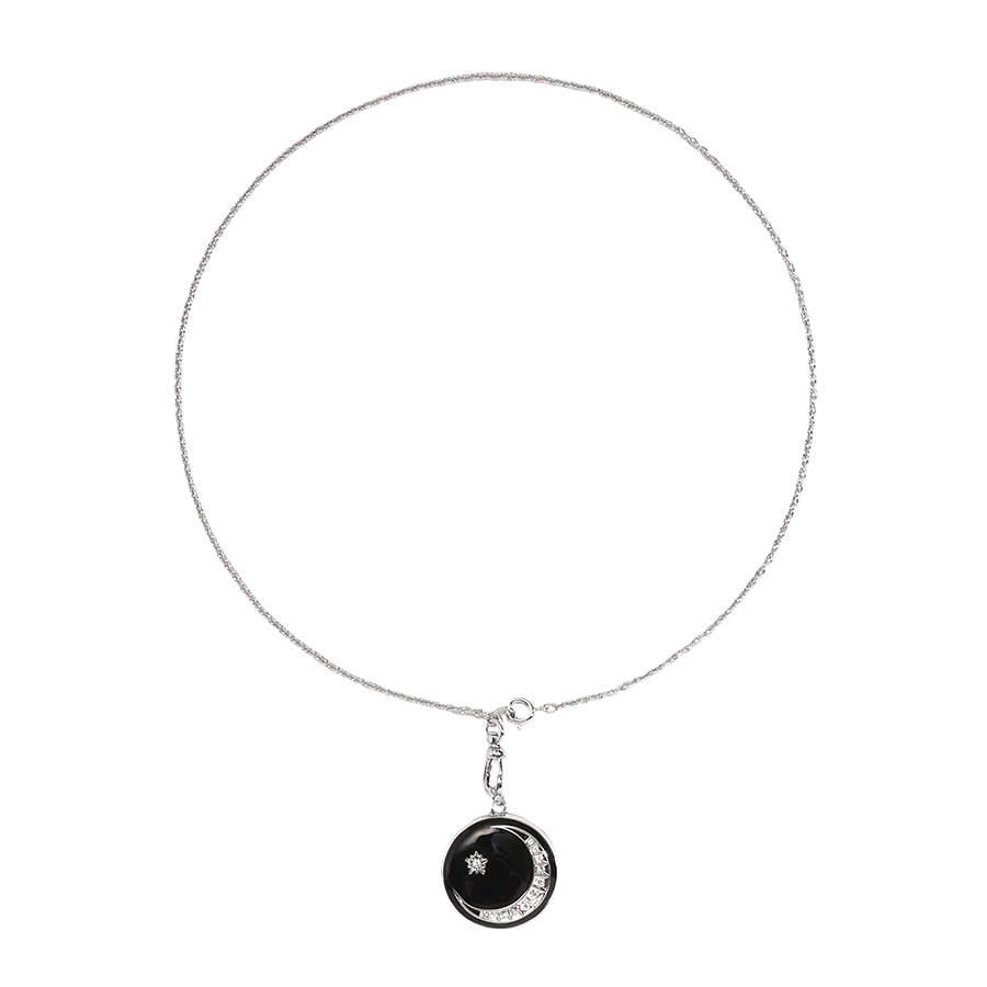 Zeldas Star Openable Locket Clasp Chain Necklace is a rhodium-plated, moon-and-star enamel locket with CZ sparkle on a 42cm chain—made for everyday minimalists, celestial-core styling, and meaningful gifting.